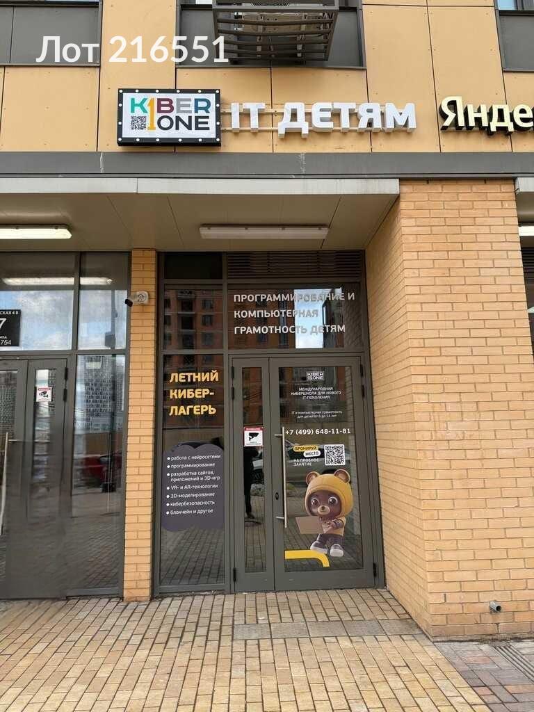 Лот № 216551 Продается помещение в ЖК Сиреневый парк 50 кв.м на первом этаже с отдельным входом. панорамными окнами , потолки 5.5 метров, санузел. Эл.мощность 15 кВт. Есть Арендатор ( детская школа програмирования, на краткосрочном договоре ) Высокий пешеходный и автомобильный трафик, напротив входа достраивается большой жилой комплекс, до метро 12 минут пешком. Продает собственник физ.лицо, без обременений.